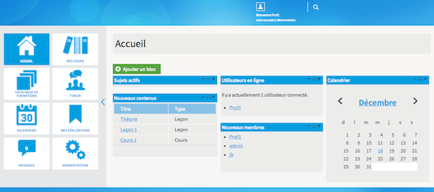 - Calendrier global permettant de consolider pour chaque utilisateur tous les événements relatifs aux cours dont il fait partie